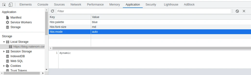 Was in diesem Local Storage enthalten ist, kann man z. B. im Chromium Browser überprüfen, in dem man den Blog öffnet und dann F12 drückt und unten auf Application klickt und dann kann man links im Bereich Storage den Local Storage einsehen:
